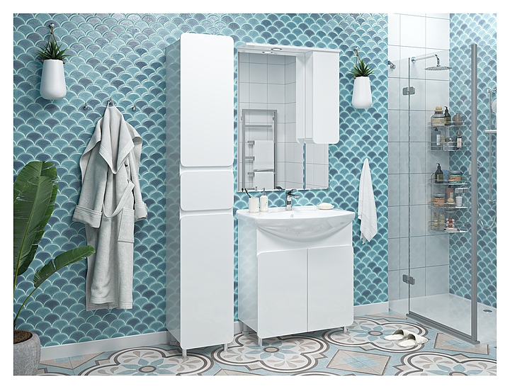 Шкаф зеркальный Misty Чегет-75 74х100 см с подсветкой, правый, белый