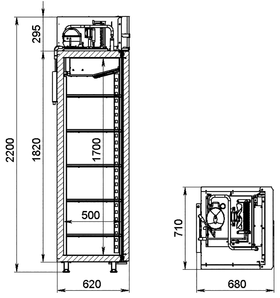 Холодильный шкаф ATESY R 0.5-S предназначен для охлаждения и кратковременного хранения скоропортящихся продуктов и напитков на предприятиях общественного питания и торговли. Модель оснащена легкосъемными вертикальными стойками и направляющими полок, распашной дверью со встроенным доводчиком и замком, 5 полками-решетками и регулируемыми по высоте ножками. Корпус выполнен из крашенного металла с цельнозаливной пенополиуретановой изоляцией. В комплект поставки входит набор ключей к замку. Особенности: