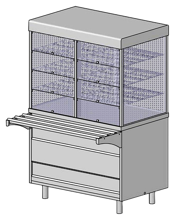 Прилавок-витрина тепловой ЦМИ Волга ПВТ-112 используется в составе линии раздачи 700 Волга на предприятиях общественного питания и торговли для выкладки и кратковременного хранения готовой продукции в теплом состоянии. Модель оснащена тумбой с распашными дверцами и застекленной витриной с LED подсветкой. Оборудование выполнено из нержавеющей стали. Особенности: