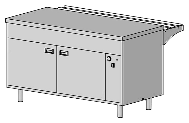 Прилавок тепловой ЦМИ Волга ПТ-150 используется в составе линии раздачи 700 Волга на предприятиях общественного питания и торговли для кратковременного хранения готовой продукции в теплом состоянии. Модель оснащена обогревом внутреннего объема тумбы и распашными дверцами. Оборудование выполнено из нержавеющей стали. Дополнительные характеристики: