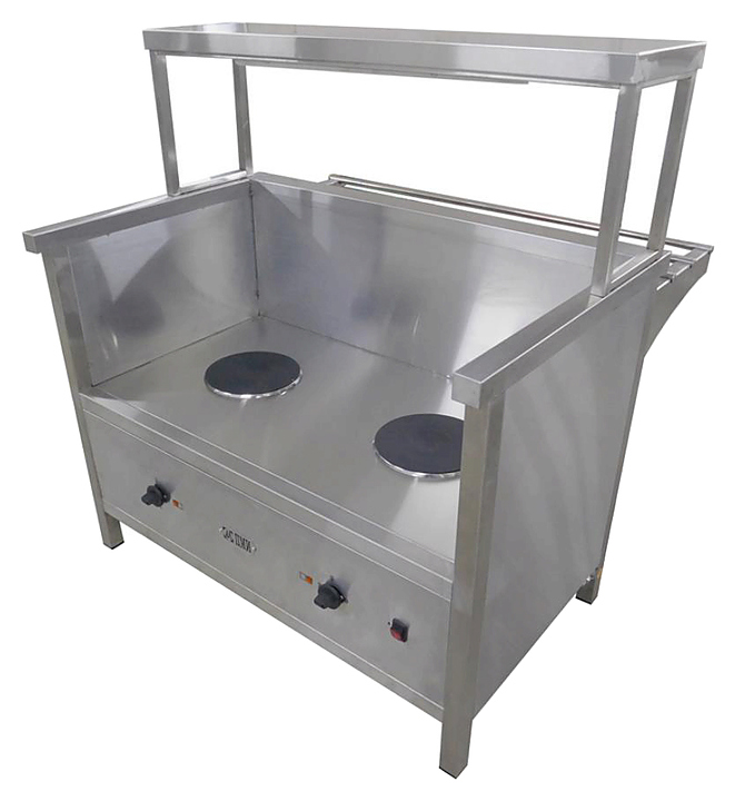 Прилавок-мармит ЦМИ Волга ПМ1нп-112 используется в составе линии раздачи 700 Волга на предприятиях общественного питания и торговли для поддержания в горячем состоянии наплитной посуды с первыми блюдами и напитками. Модель оснащена 2 конфорками с регулируемой мощностью нагрева и настольной полкой с LED подсветкой. Оборудование выполнено из нержавеющей стали. Дополнительные характеристики: