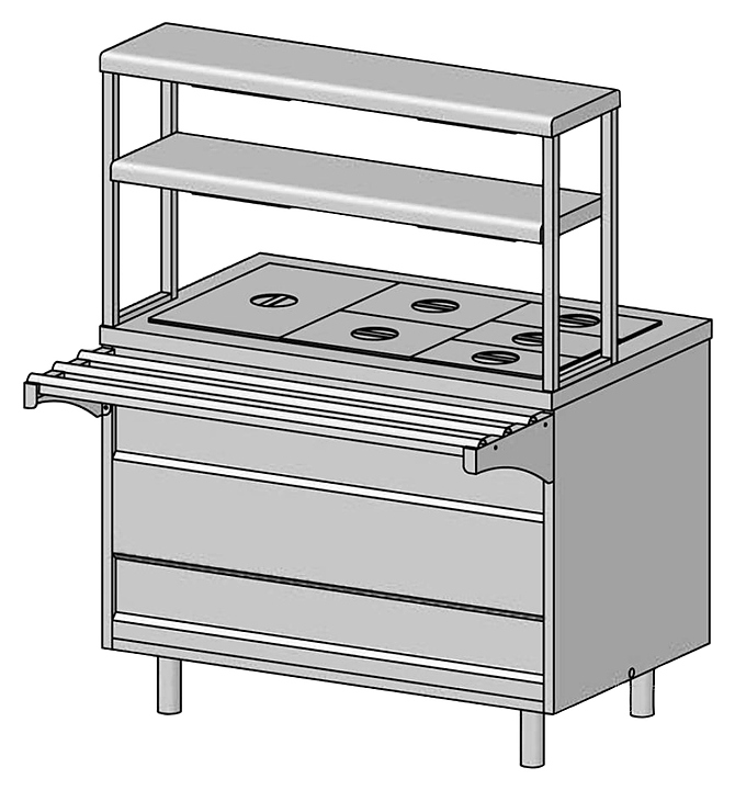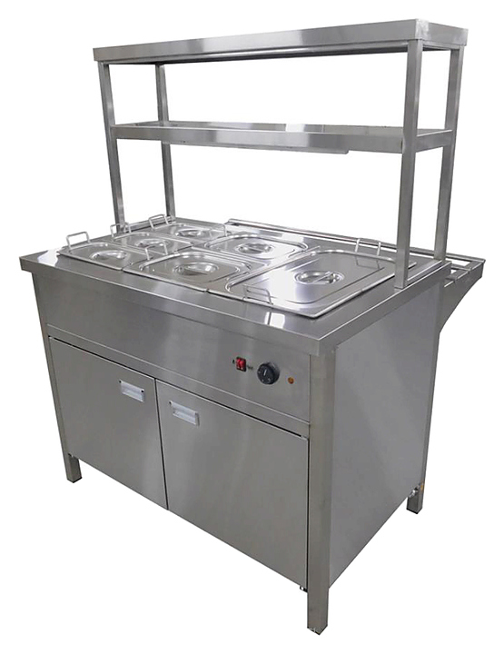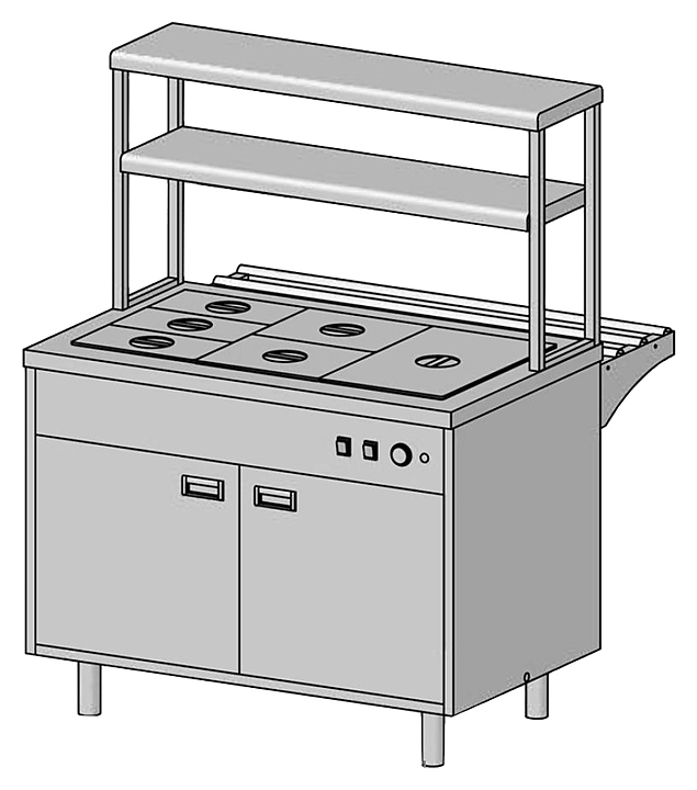 Прилавок-мармит 2-х блюд с тепловыми полками ЦМИ Волга ПМ2пт2-112 (1120х700(1030)х1480 мм)