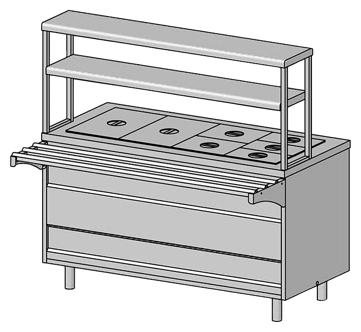 Прилавок-мармит 2-х блюд с тепловыми полками ЦМИ Волга ПМ2пт2-150 (1500х700(1030)х1480 мм)