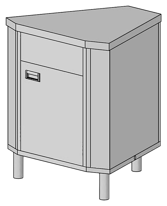 Прилавок поворотный внутренний ЦМИ Волга ППВт45 (788х700х870 мм) используется в составе линии раздачи 700 Волга на предприятиях общественного питания и торговли для изменения угла направления линии. Модель оснащена распашной дверцей. Оборудование полностью выполнено из нержавеющей стали. Дополнительные характеристики: