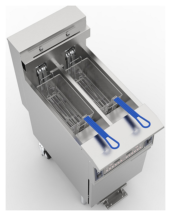 Фритюрница Kocateq EF11.6-2ALF предназначена для приготовления различных продуктов в большом количестве масла или жира на предприятиях общественного питания и торговли. Модель оснащена панелью управления, термостатом для регулировки температуры и защитным термостатом, автоматически отключающим напряжение при повреждении основного термостата. Корпус выполнен из нержавеющей стали AISI 304. Особенности: