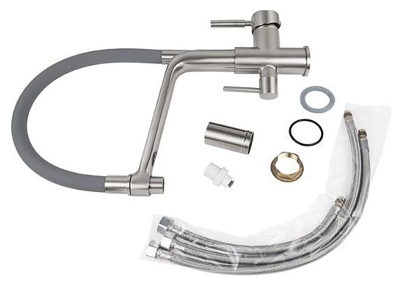 Смеситель VIKO V-5608 предназначен для подачи горячей и холодной воды в кухонных помещениях. Модель оснащена гибким изливом, краном для питьевой воды и керамическим картриджем, обеспечивающим плавный ход рычага смесителя, контроль и точность при выборе напора и температуры воды. Изделие выполнено из латуни, отличающейся прочностью, долговечностью и устойчивостью к перепадам температур. Дополнительные характеристики: