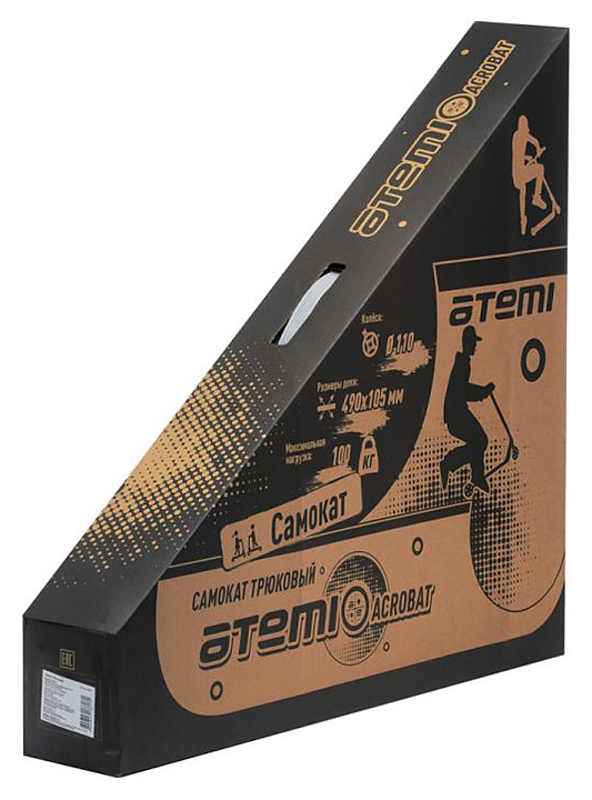 Самокат ATEMI ASC01 серии Acrobat предназначен для экстремального катания и выполнения трюков. Модель оснащена 2 колесами. Рама выполнена из 80% алюминия и 20% стали , ручки - из термопластичной резины, колеса - из полиуретана и пластика. Особенности:
