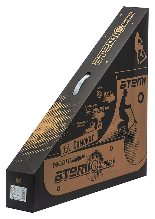 Самокат ATEMI ASC02 серии Acrobat предназначен для экстремального катания и выполнения трюков. Модель оснащена 2 колесами. Рама выполнена из 80% алюминия и 20% стали , ручки - из термопластичной резины, колеса - из полиуретана и пластика. Особенности:
