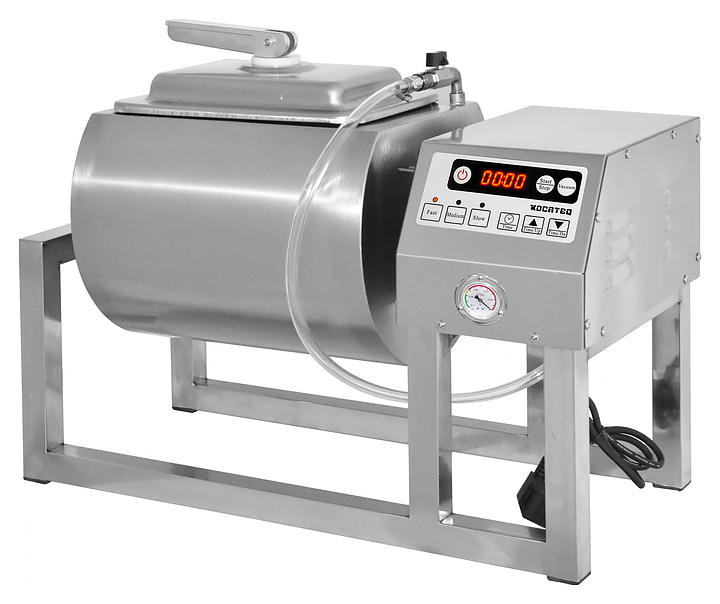 Маринатор Kocateq M18E используется на предприятиях общественного питания и торговли для быстрого маринования различных видов мяса, птицы и рыбы в автоматическом режиме. Модель оснащена электронной панелью управления, кнопкой включения, электронным дисплеем для отображения времени работы, кнопкой старт/стоп и кнопками для переключения скоростей. Корпус выполнен из нержавеющей стали AISI304 толщиной 1,2 мм. В комплект поставки входит пластиковый лоток 340х237х125 мм для выгрузки мяса. Особенности: