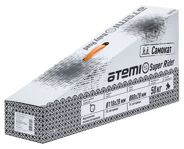 Самокат ATEMI AKC02A серии Super Rider используется детьми старше 3 лет для активного отдыха и ускоренного передвижения по городской или сельской местности. Модель оснащена 3 колесами со светодиодами и телескопической ручкой. Рама выполнена из алюминия, полипропилена и нейлона, ручки - из термопластичной резины, колеса - из полиуретана. Особенности: