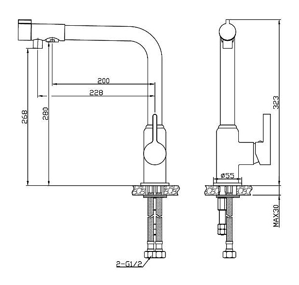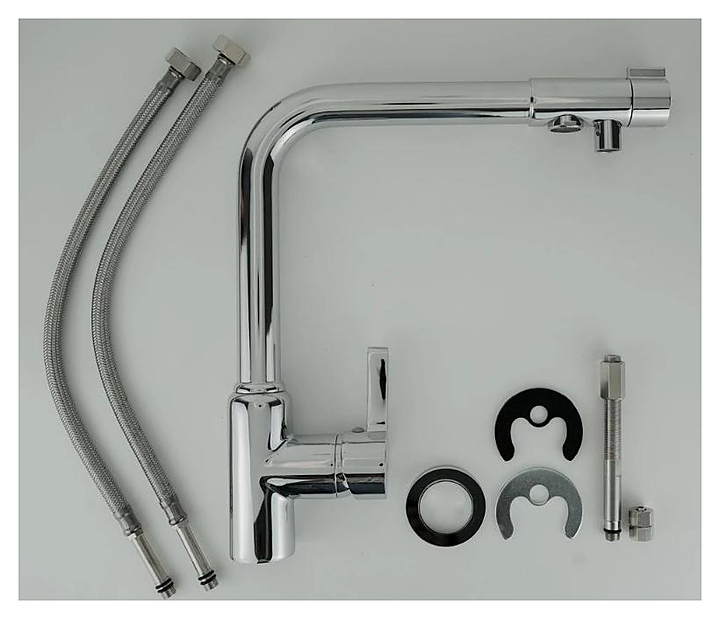 Смеситель ESKO KITCHEN K23 предназначен для подачи горячей и холодной воды в кухонных помещениях. Модель оснащена краном для фильтрованной воды с отдельным аэратором, ручкой включения на изливе и керамическим картриджем, обеспечивающим плавный ход рычага смесителя, контроль и точность при выборе напора и температуры воды. Изделие выполнено из латуни, отличающейся прочностью, долговечностью и устойчивостью к перепадам температур. В комплект поставки входят гибкая подводка, крепление и шланг подключения к фильтру. Особенности:
