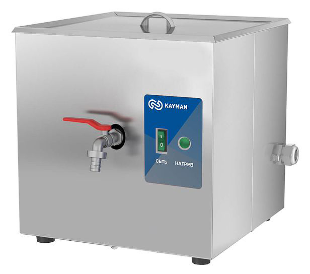 Кипятильник KAYMAN КЭ-01-100 А предназначен для непрерывного нагрева воды и последующего поддержания ее в горячем состоянии на предприятиях общественного питания и торговли. Модель оснащена блоком управления нагревом, исключающим смешивание сырой воды с раздаваемым кипятком. Корпус кипятильника и внутренняя часть изготовлены из нержавеющей стали AISI 430. Особенности: