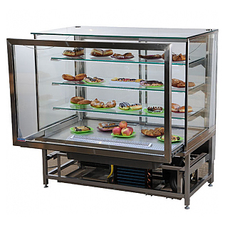 Встраиваемая холодильная витрина ТехноБалт Вена 1,25 ПСВ предназначена для демонстрации, охлаждения и кратковременного хранения кондитерских изделий и выпечки на предприятиях общественного питания и торговли. Модель оснащена 3 полками с плавной регулировкой по высоте, основанием, опорными ножками и выдвигаемым передним стеклом для облегчения уборки. Корпус и дно (столешница) выполнены из стали, полки - из стекла. Особенности: