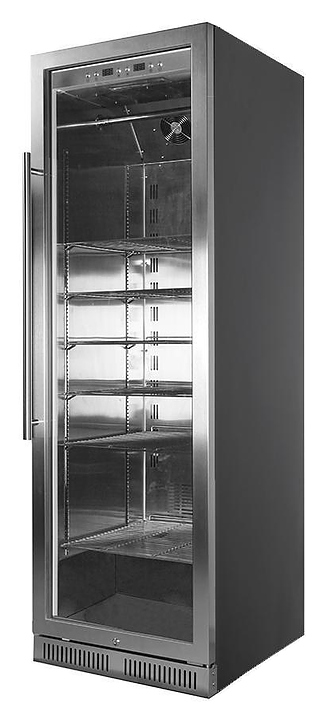 Шкаф для мяса MeatAge LUX SN-415 предназначен для охлаждения и вызревания мяса, ветчины и салями в частных домах, квартирах, отелях и офисах. Модель оснащена сенсорной панелью управления и запираемой дверцей с прочными петлями и замком. Внутренняя камера и ручки выполнены из нержавеющей стали, дверная рама - из бесшовной нержавеющей стали, дверца - из трехслойного анти-УФ стекла. В комплект поставки входят 6 хромированных полок и 2 крюка. Особенности: