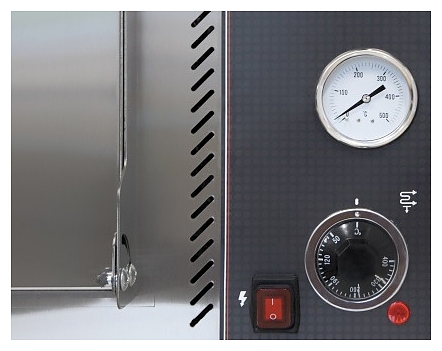 Печь Luxstahl ПЭП-4 предназначена для выпечки и разогрева пиццы, а также приготовления других изделий, не требующих пароувлажнения: фокаччи, хачапури, слоек, запеченных овощей и запеканок на предприятиях общественного питания и торговли. Модель оснащена вместительной камерой, откидной дверью с рукояткой, электромеханической панелью управления с 2 поворотными регуляторами, 2 светодиодными индикаторами и аналоговым термометром с круглым циферблатом. Корпус и внутренняя облицовка камеры выполнены из высококачественной нержавеющей стали. Особенности: