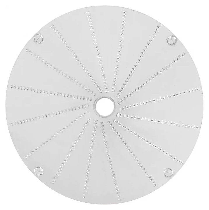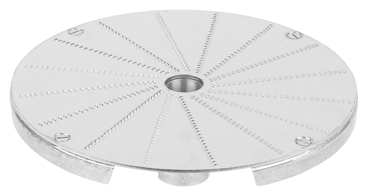 Диск-терка Robot Coupe 28055W используется совместно с овощерезками CL50 и CL50 Ultra, CL52, CL55, CL60 и кухонными процессорами R502, R752 для натирания и шинковки редьки и дальнейшего использования ее в качестве ингредиента для приготовления супов, салатов, гарниров и пр. на предприятиях общественного питания и торговли. Изделие выполнено из алюминия. Новый тип обработки поверхности дисков "Mineral+" обеспечивает оптимальную защиту поверхности диска и упрощает их очистку, а также, снижает трение о диск, обеспечивая идеальный разрез и сохраняет свежесть нарезаемых продуктов. Подходит для мытья в посудомоечной машине. Характеристики: