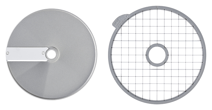 Диск для нарезки кубиком Robot Coupe 28113W серии Эксперт используется совместно с овощерезками CL50 и CL50 Ultra, CL52, CL55, CL60 и кухонными процессорами R502, R752 для нарезки овощей и фруктов кубиками и дальнейшего использования их в качестве ингредиентов для приготовления супов, салатов, гарниров и пр. на предприятиях общественного питания и торговли. Изделие выполнено из алюминия. Новый тип обработки поверхности дисков "Mineral+" обеспечивает оптимальную защиту поверхности диска и упрощает их очистку, а также, снижает трение о диск, обеспечивая идеальный разрез и сохраняет свежесть нарезаемых продуктов. Подходит для мытья в посудомоечной машине. Комплектация: