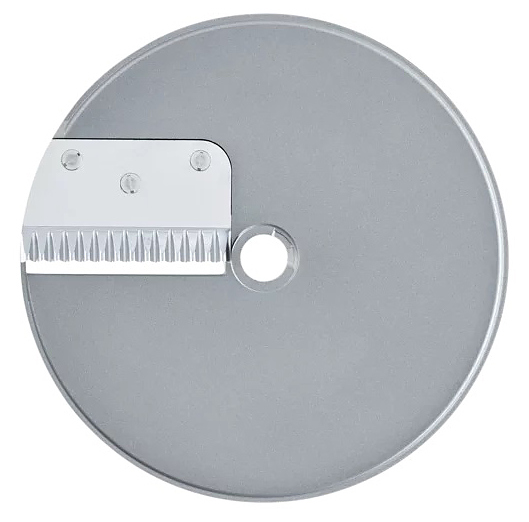 Диск для нарезки слайсами Robot Coupe 28199W серии Эксперт используется совместно с овощерезкой CL50 Gourmet для нарезки овощей и фруктов волнистыми ломтиками с дырочками гофры и дальнейшего использования их в качестве ингредиентов для приготовления супов, салатов, гарниров и пр. на предприятиях общественного питания и торговли. Диск изготовлен из алюминия с высокопрочным покрытием на минеральной основе, обеспечивающим оптимальную защиту поверхности диска и лёгкую очистку оборудования после работы. Подходит для мытья в посудомоечной машине. Характеристики: