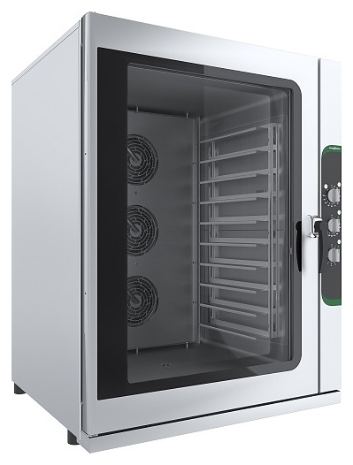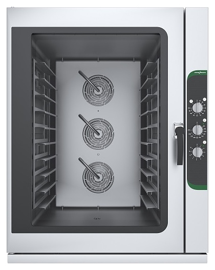 Пароконвектомат Пищевые Технологии ПР-10М-Э предназначен для приготовления широкого спектра блюд, выпечки хлебобулочных и кондитерских изделий в гостиничном и ресторанном бизнесе, на предприятиях пищевой промышленности, общественного питания и торговли. Модель оснащена жарочной камерой с 3 кольцевыми трубчатыми электронагревателями (ТЭНами) и 3 электродвигателями с вентиляторами в задней стенке, левосторонней герметично запираемой дверью с механическим замком, 4 устойчивыми опорами, электромеханической панелью управления с 3 круговыми поворотными регуляторами и 3 сигнальными светодиодными индикаторами. Корпус выполнен из высококачественной стали с термоизоляцией. В комплект поставки входят шланг для подключения к системе водоснабжения и инструкция по эксплуатации. Рекомендуется дополнительно приобрести водоумягчитель и фильтр-систему для очистки и смягчения воды. Подробнее о необходимости водоподготовки читайте здесь. Особенности: