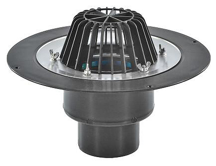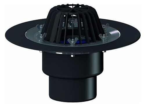 Кровельная воронка HL 62/1 с вертикальным выпуском используется при устройстве водоотвода c плоской кровли. Воронка оснащена листвоуловителем, теплоизоляцией, обжимным фланцем. Корпус изготовлен из высокопрочного полимера PP (полипропилен), устойчивого к ультрафиолетовому и атмосферному воздействию, фланец из нержавеющей стали. Особенности: