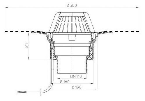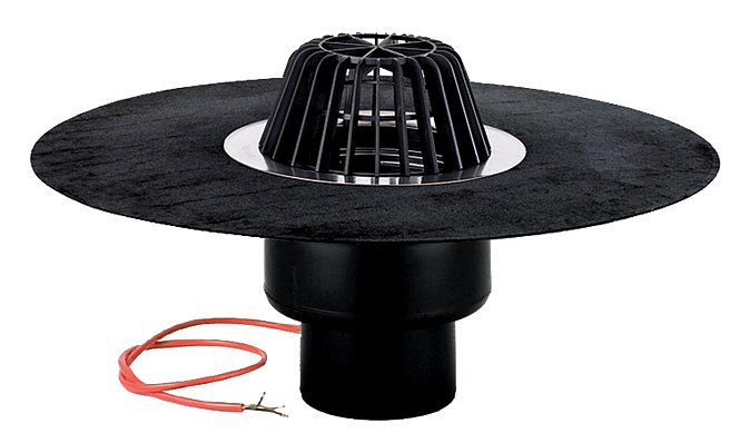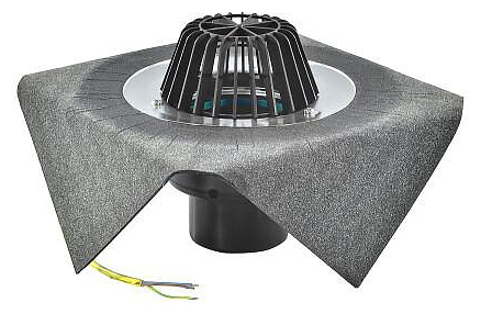 Воронка кровельная HL 62.1H/1 с вертикальным выпуском PP Дн 110 с листвоуловителем, электрообогревом, теплоизоляцией, гидроизоляционным полотном