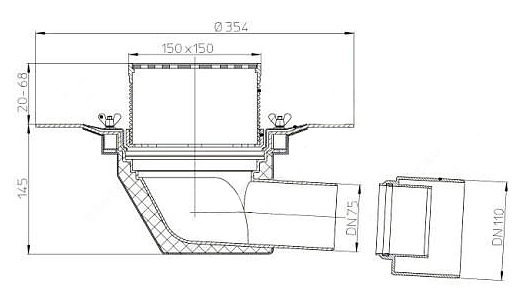 Воронка кровельная HL 64B с горизонтальным выпуском PP Дн 75/110 с трапом, теплоизоляцией, обжимным фланцем