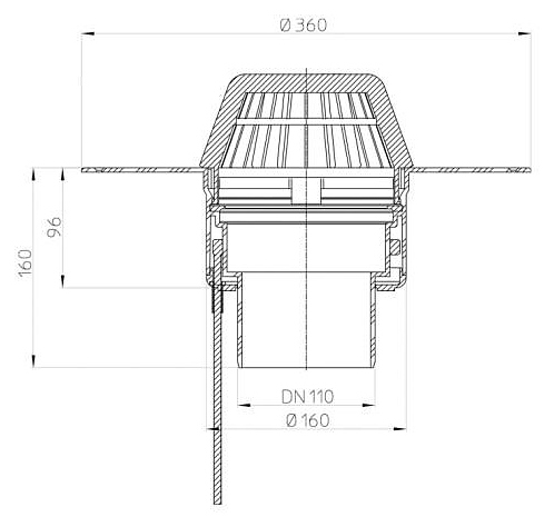 Воронка кровельная HL 62.1P/1 с вертикальным выпуском PP Дн 110 с листвоуловителем, электрообогревом, теплоизоляцией
