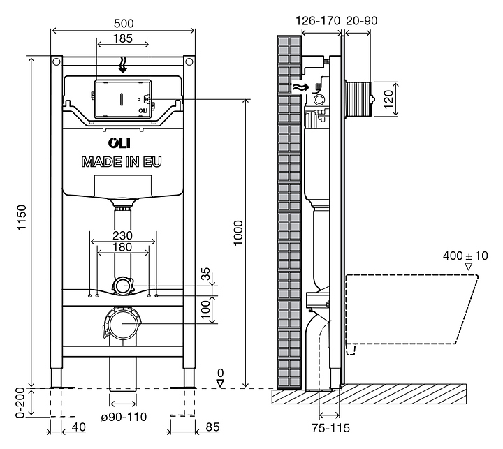 Система инсталляции OLI Oli 80 Sanitarblock 300572mSl00 предназначена для установки подвесных унитазов. Модель представляет собой настенную опорную раму с бачком скрытого монтажа, панелью смыва и регулируемыми по высоте ножками. Рама выполнена из стальной трубы окрашенной защитной краской, что гарантирует долговечность, надежность и защиту от коррозии. В комплект поставки входят крепления для установки, сливной бачок и панель смыва. Комплектация: