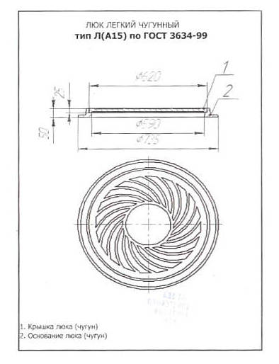 Люк канализационный ДПК Л (А15) по ГОСТ 3634-99