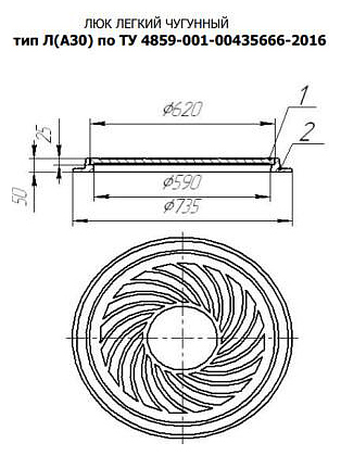 Люк водопроводный ДПК Л (А30) по ТУ 4859-001-00435666-2016