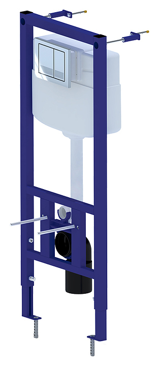 Система инсталляции АНИ Пласт WCP1121 предназначена для установки подвесных унитазов. Модель представляет собой настенную опорную раму с бачком, панелью смыва и регулируемыми по высоте ножками. Рама выполнена из металла, окрашенного краской, что гарантирует долговечность, надежность и защиту от коррозии, бачок и панель смыва - из пластика. В комплект поставки входят инсталляция WC1110, крепления для установки, сливной бачок и панель смыва. Комплектация: