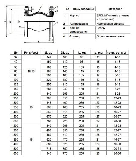 Компенсатор резиновый Benarmo EPDM Ду 200 Ру10 фланцевый