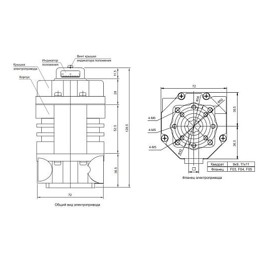 Электропривод ГЗ Электропривод четвертьоборотный ГЗ-ОФ-25/5,5К F05 9х9 квадрат 220В