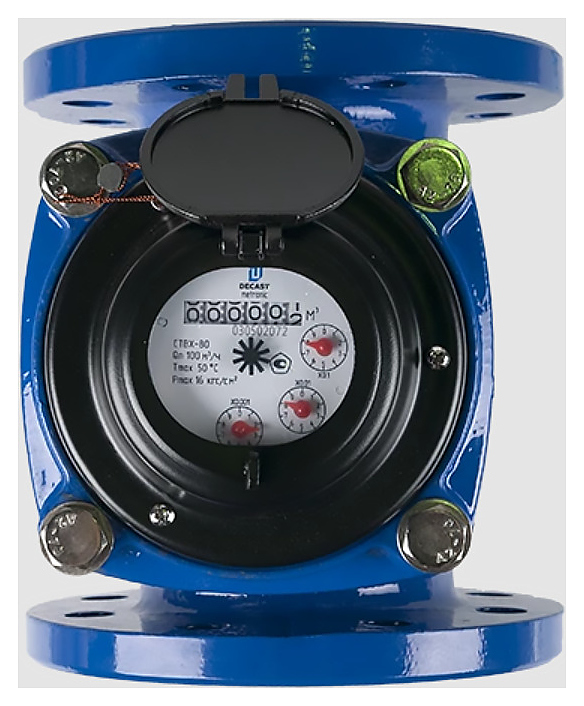 Счётчик холодной воды Декаст СТВХ 78-80-01 используется для измерения суммарного расхода холодной питьевой и сетевой воды в системах водоснабжения на объектах с большим расходом воды, промышленных предприятиях и в жилищно-коммунальном хозяйстве. Прибор оснащен измерительной турбиной и счетным механизмом. Корпус прибора выполнен из чугуна и окрашен в синий цвет. В комплект поставки входит набор монтажных частей и прокладок. Особенности: