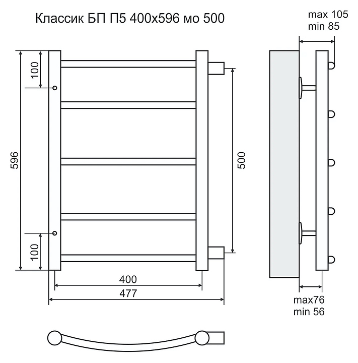 Полотенцесушитель водяной Terminus Классик 5П Ду 25 (1") НР 40х59,6 см, боковое подключение