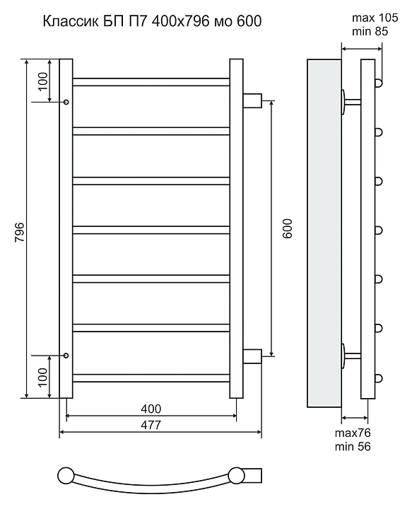 Полотенцесушитель водяной Terminus Классик 7П Ду 25 (1") НР 40х79,6 см, боковое подключение