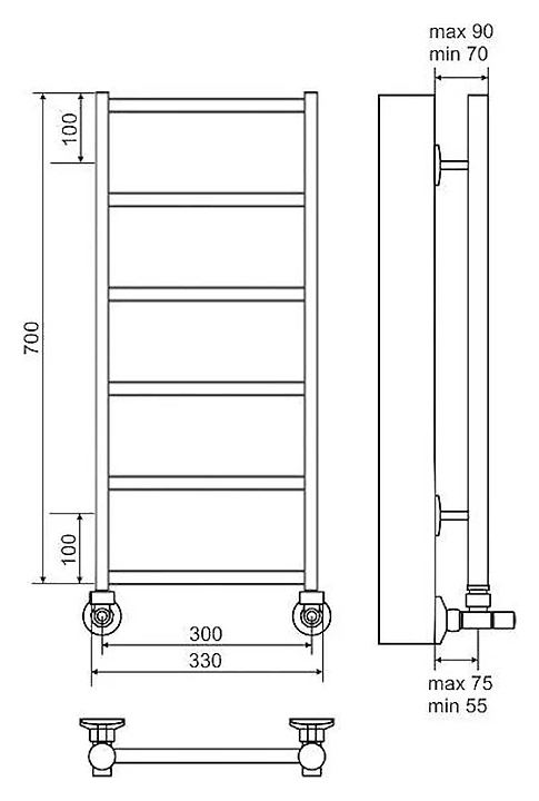 Полотенцесушитель водяной Terminus Контур 6П Ду 25 (1/2") ВР 30х70 см, нижнее подключение