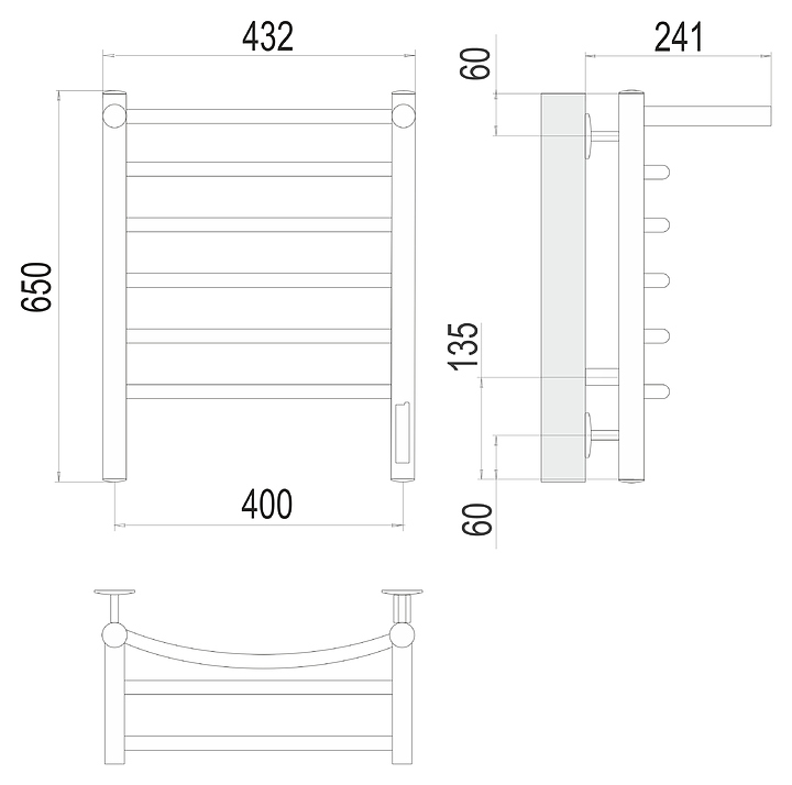 Полотенцесушитель электрический Terminus Классик 6П 40х65 см, с полочкой и встроенным диммером справа
