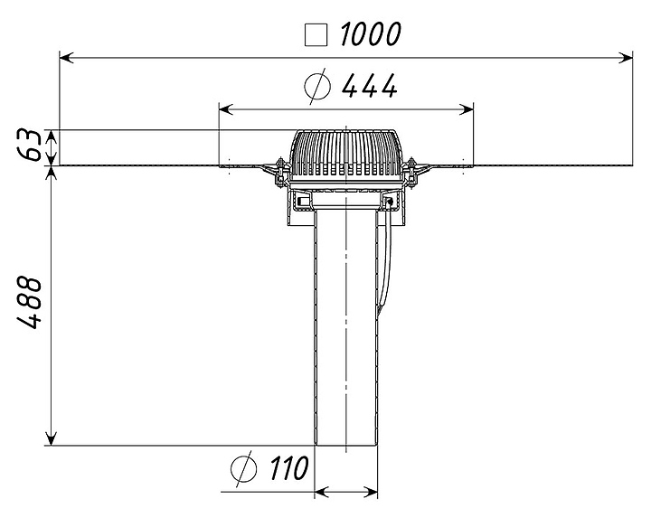 Кровельная воронка Татполимер ТП-01.У.100/4/В-Э с вертикальным выпуском используется для отвода дождевой и талой воды с плоских кровель в дождевую канализацию, для организации внешнего водостока через балконы и парапеты, для аварийного внешнего и внутреннего водостока. Воронка оснащена листвоуловителем для предотвращения попадания веток, листьев и прочего мусора в дождевую канализацию и прижимным и нижним фланцами. Корпус воронки и листвоуловитель изготовлены из полипропилена, устойчивого к ультрафиолетовому и атмосферному воздействию, фланцы - из нержавеющей стали. В комплект поставки входит корпус воронки, нижний и прижимной фланец, набор крепежа (гайки и шайбы), листвоуловитель, обод-фиксатор нагревательного элемента, саморегулирующийся кабель «TRACECO-30». мощностью 15 Вт, битумно-полимерная прокладка. Дополнительные характеристики: