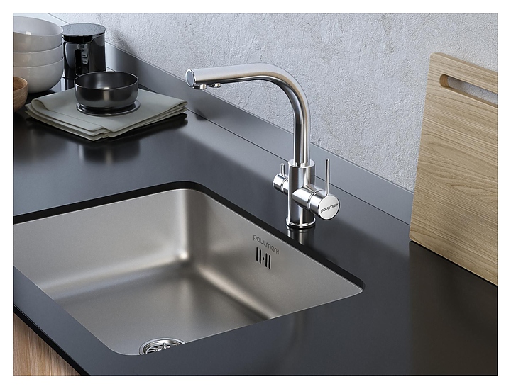 Смеситель Paulmark Essen Es213011-CR предназначен для подачи горячей и холодной воды в кухонных помещениях. Модель имеет дополнительный излив для фильтра и аэраторы, которые экономят расход воды, уменьшают шум и снижают количество брызг. Керамический картридж обеспечивает плавный ход рычага смесителя, контроль и точность при выборе напора и температуры воды. Изделие выполнено из латуни, отличающейся прочностью, долговечностью и устойчивостью к перепадам температур. В комплект поставки входят крепления, аэратор и гибкая подводка. Дополнительные характеристики: