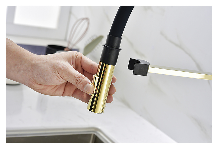 Смеситель Paulmark Halt Ha214021-G предназначен для подачи горячей и холодной воды в кухонных помещениях. Модель оснащена гибким изливом, режимом для душа и аэратором, который экономит расход воды, уменьшает шум и снижает количество брызг. Керамический картридж обеспечивает плавный ход рычага смесителя, контроль и точность при выборе напора и температуры воды. Изделие выполнено из латуни, отличающейся прочностью, долговечностью и устойчивостью к перепадам температур. В комплект поставки входят крепления, аэратор и гибкая подводка. Дополнительные характеристики: