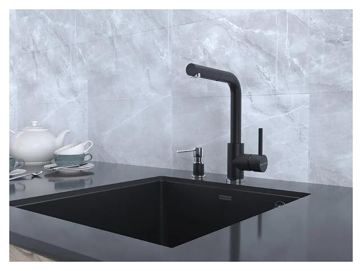 Смеситель Paulmark Kassel Ka214311-401TB предназначен для подачи горячей и холодной воды в кухонных помещениях. Модель оснащена выдвижным изливом и аэратором, который экономит расход воды, уменьшает шум и снижает количество брызг. Керамический картридж обеспечивает плавный ход рычага смесителя, контроль и точность при выборе напора и температуры воды. Изделие выполнено из латуни, отличающейся прочностью, долговечностью и устойчивостью к перепадам температур. В комплект поставки входят крепления, аэратор и гибкая подводка. Дополнительные характеристики: