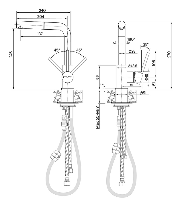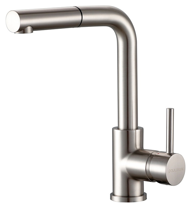 Смеситель Paulmark Kassel Ka214311-NI предназначен для подачи горячей и холодной воды в кухонных помещениях. Модель оснащена выдвижным изливом и аэратором, который экономит расход воды, уменьшает шум и снижает количество брызг. Керамический картридж обеспечивает плавный ход рычага смесителя, контроль и точность при выборе напора и температуры воды. Изделие выполнено из латуни, отличающейся прочностью, долговечностью и устойчивостью к перепадам температур. В комплект поставки входят крепления, аэратор и гибкая подводка. Дополнительные характеристики: