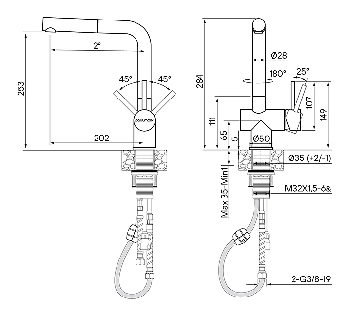 Смеситель Paulmark Dosse Do214418-431 предназначен для подачи горячей и холодной воды в кухонных помещениях. Модель оснащена выдвижным изливом и аэратором, который экономит расход воды, уменьшает шум и снижает количество брызг. Керамический картридж обеспечивает плавный ход рычага смесителя, контроль и точность при выборе напора и температуры воды. Изделие выполнено из нержавеющей стали, отличающейся прочностью, долговечностью и устойчивостью к коррозии. В комплект поставки входят крепления, аэратор и гибкая подводка. Дополнительные характеристики: