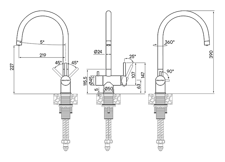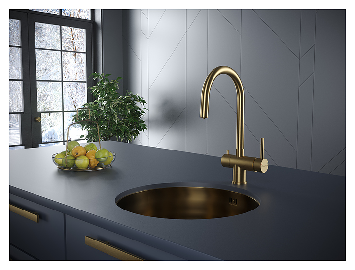 Смеситель Paulmark Heller He213218-BG предназначен для подачи горячей и холодной воды в кухонных помещениях. Модель имеет встроенный кран для питьевой воды и аэратор, который экономит расход воды, уменьшает шум и снижает количество брызг. Керамический картридж обеспечивает плавный ход рычага смесителя, контроль и точность при выборе напора и температуры воды. Изделие выполнено из нержавеющей стали, отличающейся прочностью, долговечностью и устойчивостью к коррозии. В комплект поставки входят крепления, аэратор и гибкая подводка. Дополнительные характеристики: