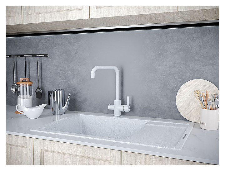 Смеситель Paulmark Logas Lo213021-310 предназначен для подачи горячей и холодной воды в кухонных помещениях. Модель имеет встроенный кран для питьевой воды и самоочищающийся аэратор, который экономит расход воды, уменьшает шум и снижает количество брызг. Керамический картридж обеспечивает плавный ход рычага смесителя, контроль и точность при выборе напора и температуры воды. Изделие выполнено из латуни, отличающейся прочностью, долговечностью и устойчивостью к перепадам температур. В комплект поставки входят крепления, аэратор и гибкая подводка. Дополнительные характеристики: