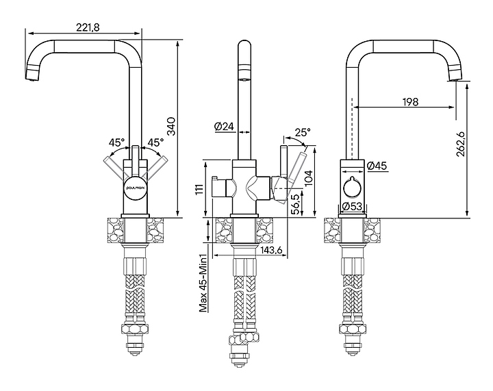 Смеситель Paulmark Logas Lo213021-418 предназначен для подачи горячей и холодной воды в кухонных помещениях. Модель имеет встроенный кран для питьевой воды и самоочищающийся аэратор, который экономит расход воды, уменьшает шум и снижает количество брызг. Керамический картридж обеспечивает плавный ход рычага смесителя, контроль и точность при выборе напора и температуры воды. Изделие выполнено из латуни, отличающейся прочностью, долговечностью и устойчивостью к перепадам температур. В комплект поставки входят крепления, аэратор и гибкая подводка. Дополнительные характеристики: