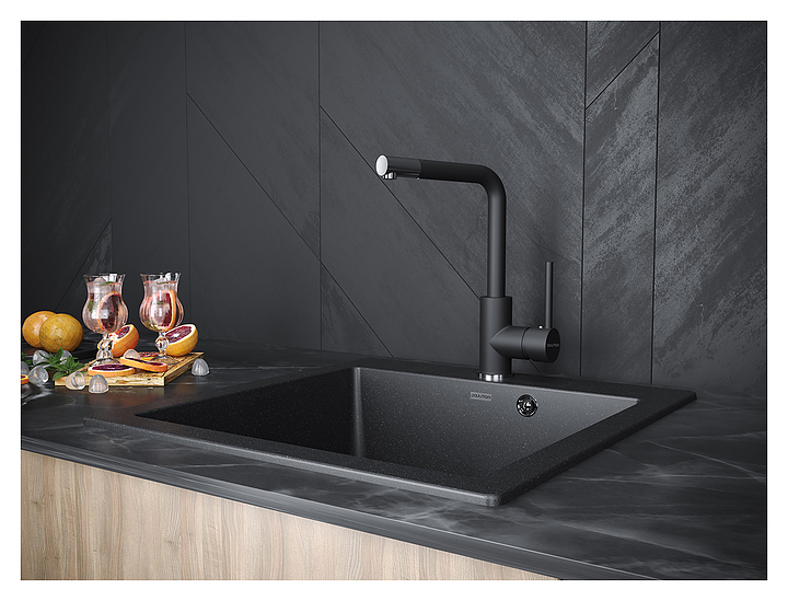 Смеситель Paulmark Honner Ho212018-401TB предназначен для подачи горячей и холодной воды в кухонных помещениях. Модель оснащена аэратором, который экономит расход воды, уменьшает шум и снижает количество брызг. Керамический картридж обеспечивает плавный ход рычага смесителя, контроль и точность при выборе напора и температуры воды. Изделие выполнено из латуни, отличающейся прочностью, долговечностью и устойчивостью к перепадам температур. В комплект поставки входят крепления, аэратор и гибкая подводка. Дополнительные характеристики: