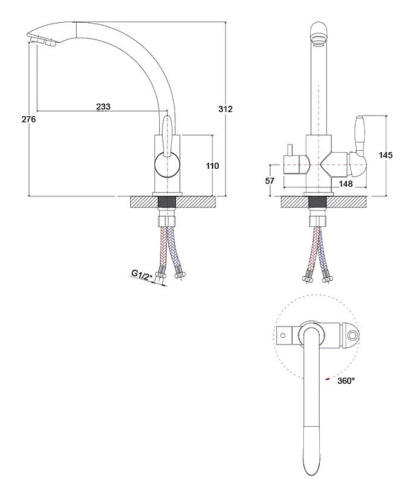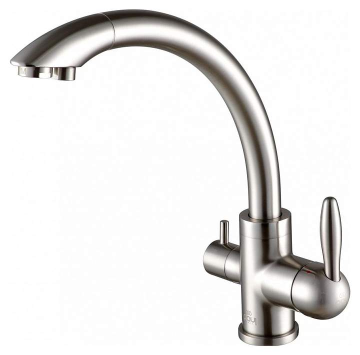 Смеситель Paulmark Essen Es213001-NI предназначен для подачи горячей и холодной воды в кухонных помещениях. Модель имеет дополнительный излив для питьевой воды и аэратор, который уменьшает шум и снижает количество брызг. Керамический картридж обеспечивает плавный ход рычага смесителя, контроль и точность при выборе напора и температуры воды. Изделие выполнено из латуни, отличающейся прочностью, долговечностью и устойчивостью к перепадам температур. В комплект поставки входят крепления, аэратор и гибкая подводка. Дополнительные характеристики: