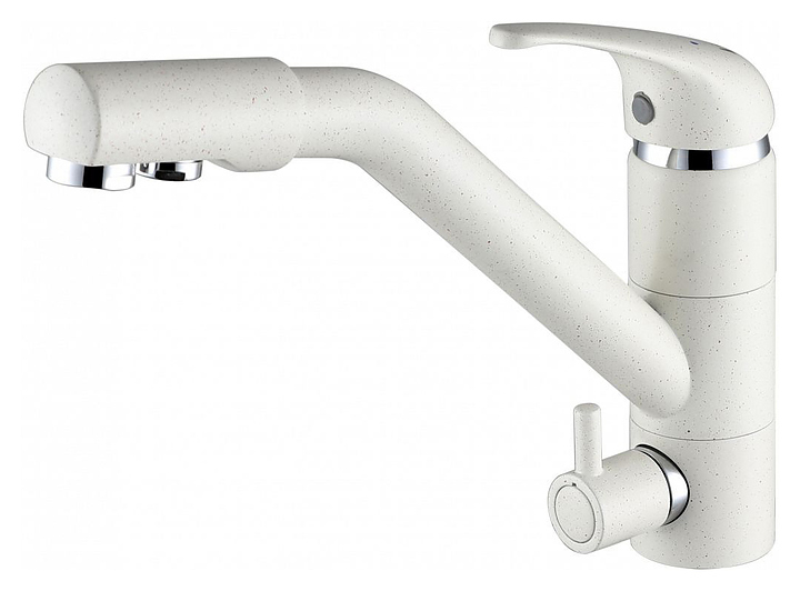 Смеситель Paulmark Hessen He213017-331 предназначен для подачи горячей и холодной воды в кухонных помещениях. Модель имеет дополнительный излив для питьевой воды и аэратор, который уменьшает шум и снижает количество брызг. Керамический картридж обеспечивает плавный ход рычага смесителя, контроль и точность при выборе напора и температуры воды. Изделие выполнено из латуни, отличающейся прочностью, долговечностью и устойчивостью к перепадам температур. В комплект поставки входят крепления, аэратор и гибкая подводка. Дополнительные характеристики: